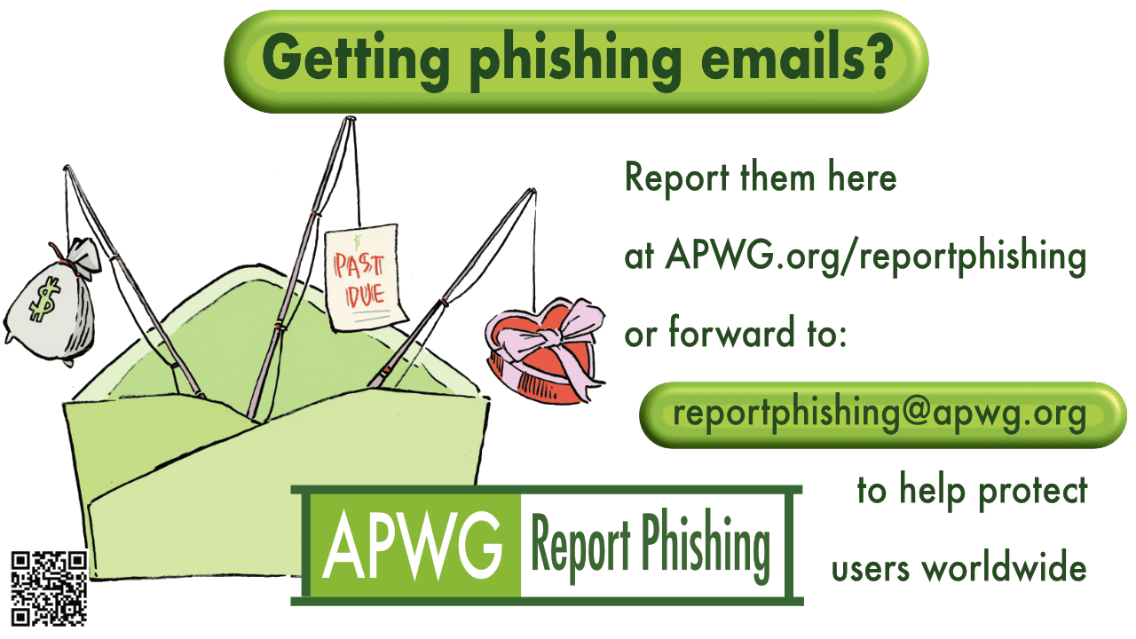 Reports sent here can be examined by APWG members and re-lodged on eCX as a high-confidence record, gold standard for automated responses maintained by APWG members. Be first to call the posse, pilgrims!