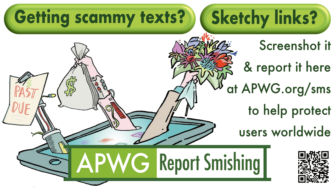 APWG's member responders and researchers and their applications are eager to review any malicious SMS or text messages you receive. The information you provide will be used to track and block the sender and reduce future victimizations.
