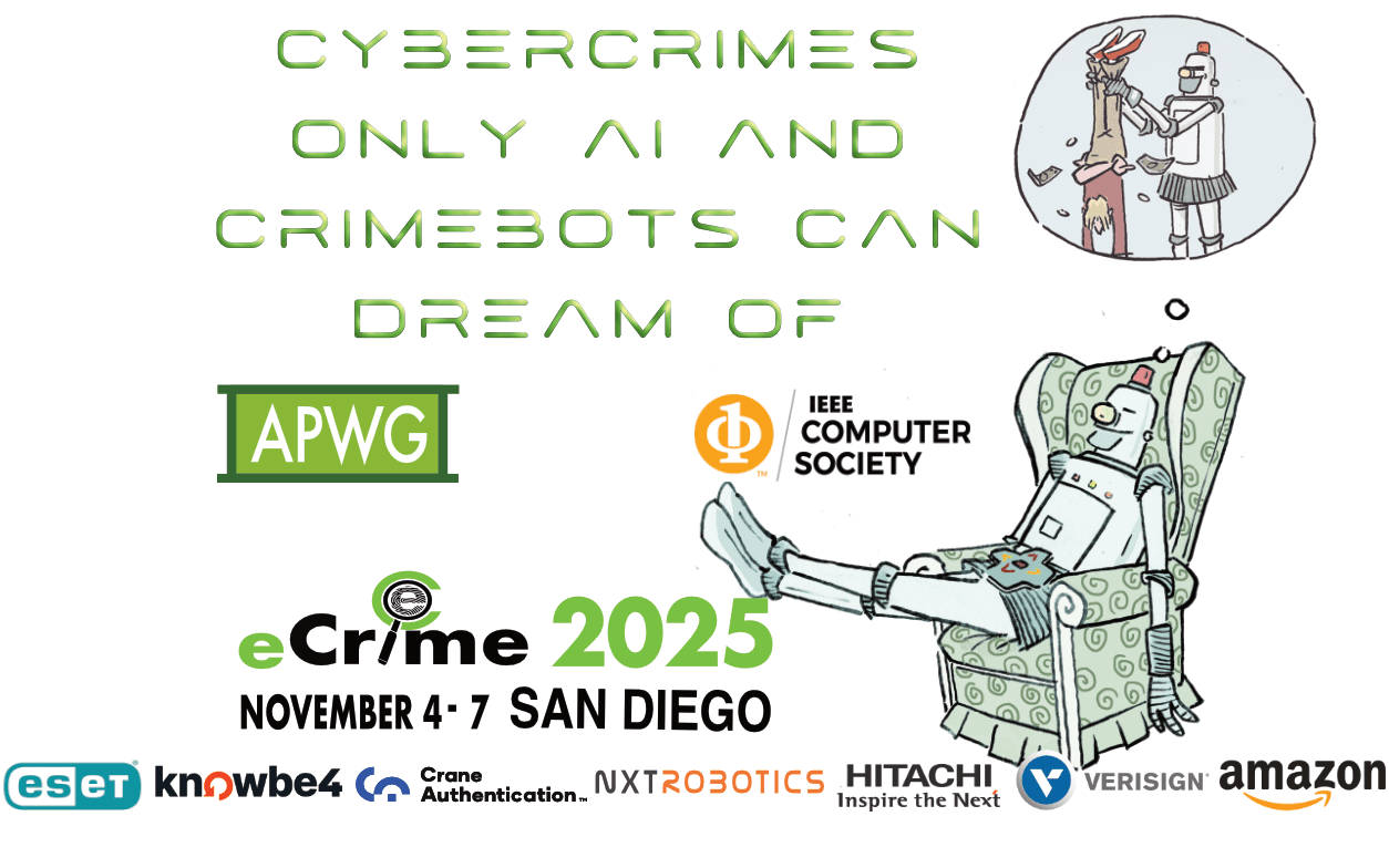 APWG eCrime 2025 examines essential factors for managing the impacts of the global cybercrime plexus to secure IT users, commercial enterprises, governments, critical infrastructures, and operational technologies. eCrime 2025 will be the 20th annual peer-reviewed, publishing symposium hosted by APWG, this year focusing on AI and the growing menace of cyber-physical threats.
